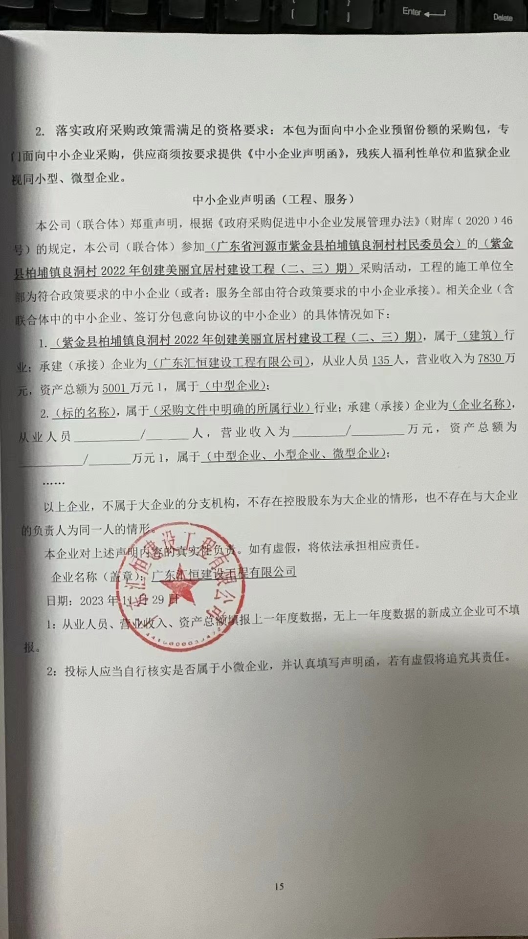 1、供應(yīng)商名稱:廣東匯恒建設(shè)工程有限公司