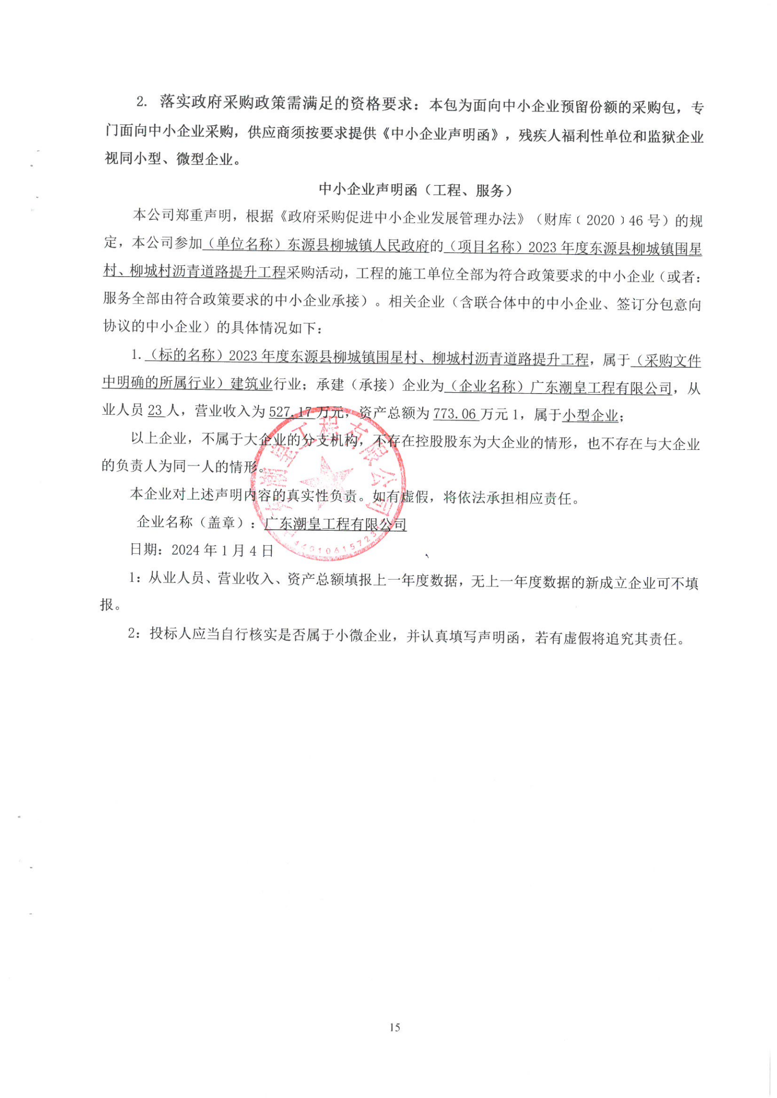 項目名稱:2023年度東源縣柳城鎮(zhèn)圍星村、柳城村瀝青道路提升工程 工程范圍:按談判文件規(guī)定要求 工程要求:按談判文件要求完成相關(guān)工作 合同履行期限:合同簽訂后20日歷天內(nèi)完工。 |