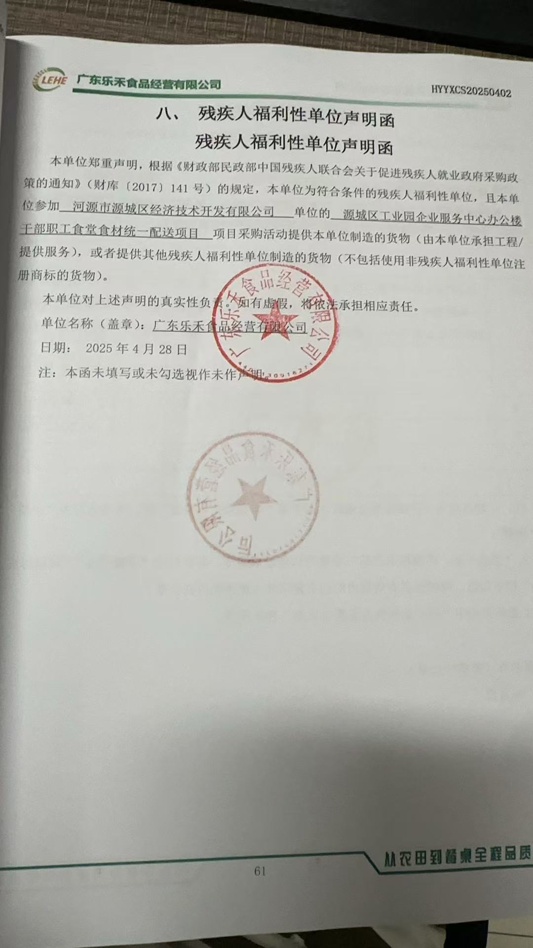 二、項目名稱:源城區(qū)工業(yè)園企業(yè)服務(wù)中心辦公樓干部職工食堂食材統(tǒng)一配送項目